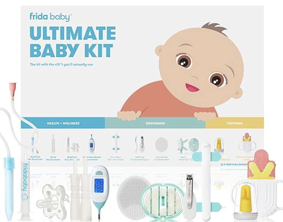 Frida Baby Ultimate Baby Kit, 10 piece New Born Essentials Gift Set Includes Wellness Sick Day, Gas Relief, Grooming Tools & Teething Toys