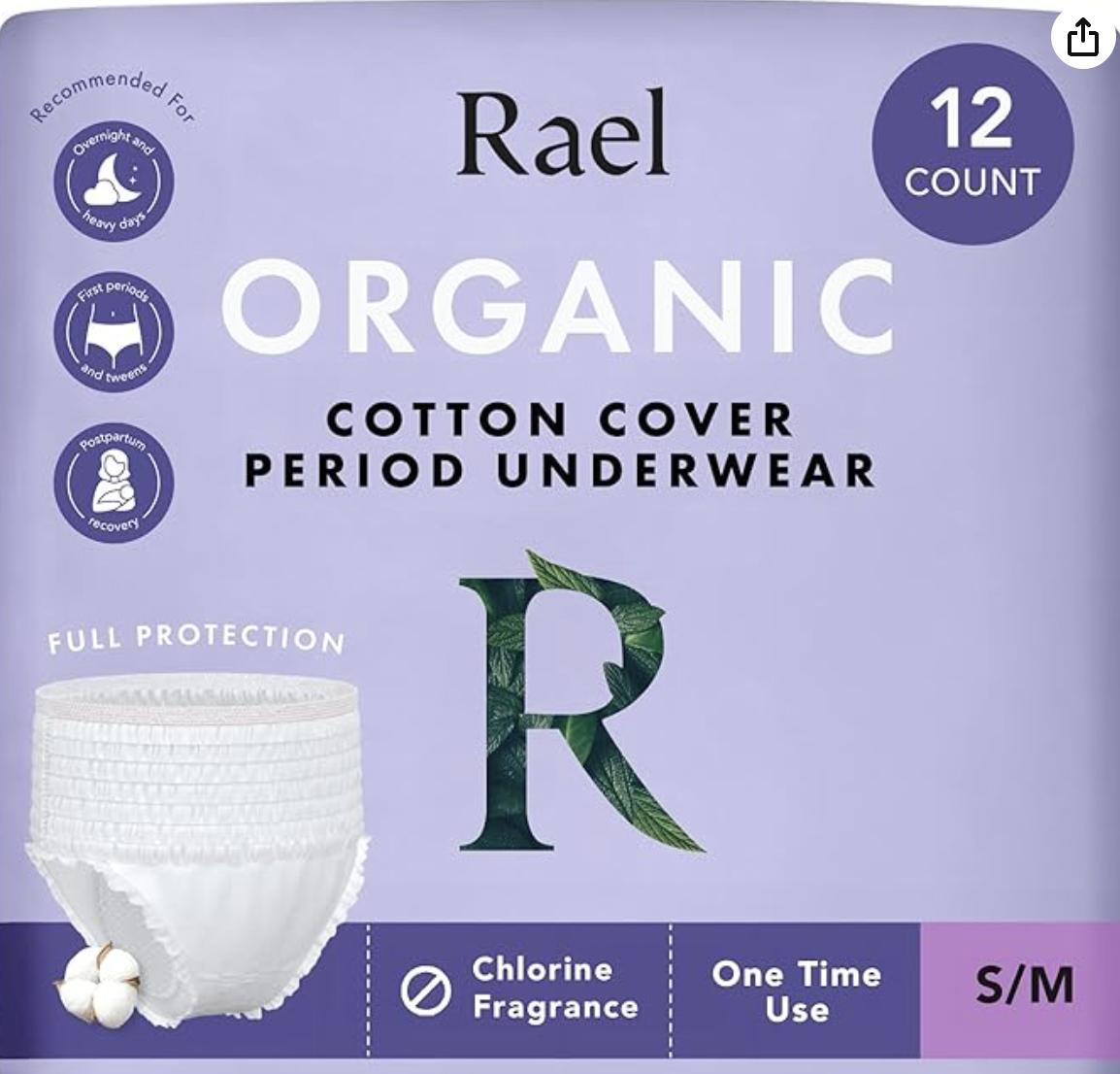 Rael Disposable Underwear for Women, Organic Cotton Cover – Incontinence Pads, Postpartum Essentials, Disposable Underwear, Unscented, Maximum Coverage (Size S-M, 12 Count)