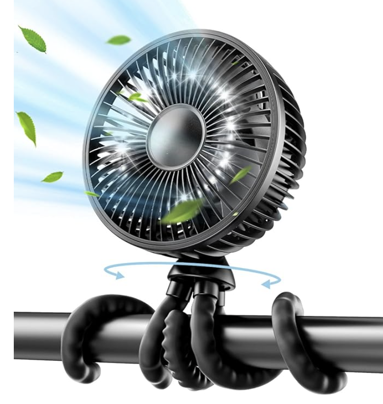 Gaiatop Baby Stroller Fan, 4000mAh Oscillating Mini Portable Fan with Light, 4 Speeds Battery Operated Small Handheld Desk Fan, 360° Rotate Flexible Tripod Clip On Fan for Car Seat Crib Travel Black, this is also helpful in labor! More Info